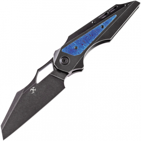4.75" (12.07cm) closed. 3.5" (8.89cm) black stonewash finish CPM S35VN stainless blade. Black stonewash finish titanium handle with timascus inlay. Thumb pull. Pocket clip. Lanyard hole. Black nylon pouch. Boxed.