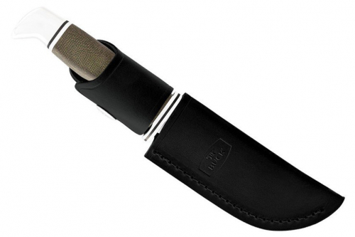 The classic 103 Skinner is a long running, famous skinner. One of the early Buck designs, the curved belly aids in getting through thick layers while the narrow, turned-down point easily finishes up skinning tasks. Now offered with Bucks premium S35VN steel and green canvas Micarta handles, the 103 is unstoppable. Full tang construction, a finger guard integrated into the blade, a sure grip and leather sheath help make this knife one of the best options for working through multiple animals.