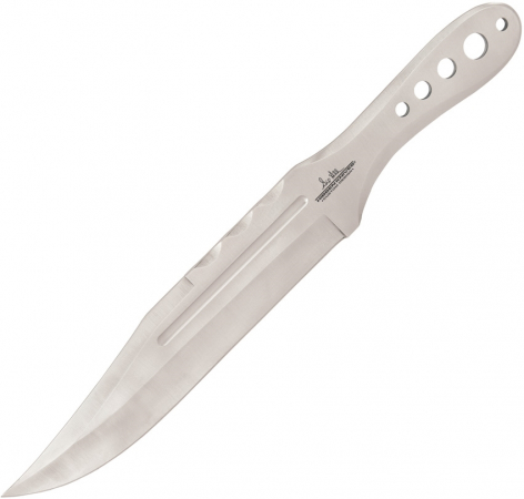 15" (38.1cm) overall. 9.25" (23.5cm) satin finish 3Cr13 stainless blade. One-piece construction. Lanyard hole. Black leather belt sheath. Boxed.