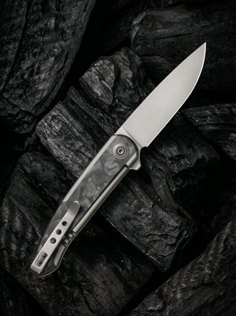 We Knife Co Smooth Sentinel Framelock Flipper Marbled CF WE200431