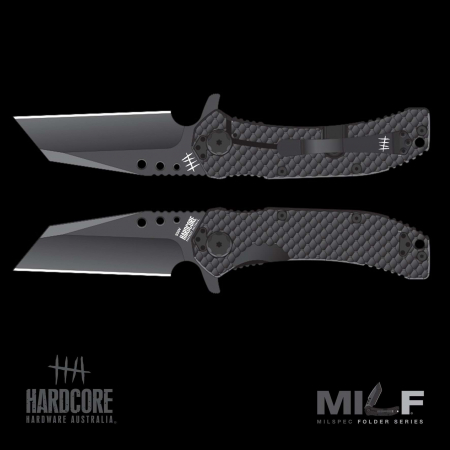 The MILF-04 from Hardcore Hardware Australia is a mid-sized Wharncliffe utility folding knife, offering the optimum balance between weight, strength, and cutting power.