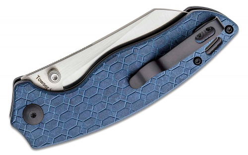 The Towser K is a distinctive, unique folding knife designed to be a functional and attractive EDC knife. If there were ever such thing as a folding Santoku kitchen knife, it would look a lot like this. If you're cutting against a surface, the angle of the edge and the design of the handle keeps the fingers away from the table. Be it tape, food, packaging, or whatever you encounter, the Towser K will make your cutting job easy and comfortable.