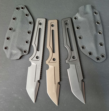The Ultralight features a D2 Black Cerakoted 6mm blade with integral construction ( Top 2″ Swedge Sharpened ) . The grinds and the overall fit and finish are excellent ,feels great in the hand comes with custom Kydex sheath.