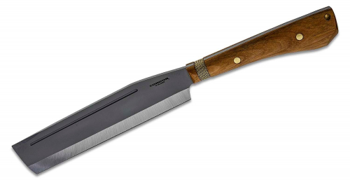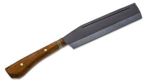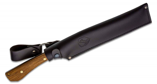 The Batonata Chopper is a time-honored tool that is used for splitting wood. Whether it is for making shakes for roofs, or splitting wood for campfires, this tool is a perfect small axe substitute, and can chop as well! Dare we say it works well and is designed for batoning? An American hickory handle and a braided wrap near the top to help protect the haft of the 5 mm thick blade. Our full tang version of the Nata has a 10" blade and is ground on both sides. This version of the classic comes with a full-grain leather sheath.