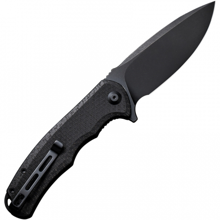 4.75" (12.07cm) closed. 3.75" (9.53cm) black stonewash finish 9Cr18MoV stainless blade. Black micarta handle. Extended tang. Lanyard hole. Pocket clip. Black nylon zippered storage case. Boxed.
