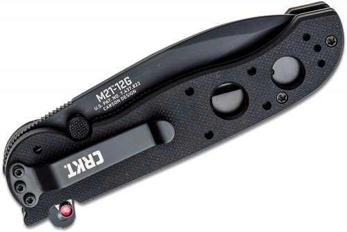 As is standard practice on CRKT folders, Teflon bearings at the blade pivot assure velvety-smooth one-hand opening and closing, using Kit Carson's trademark dual checkered thumb studs which also act as a blade stop.
