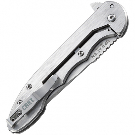 4.75" closed. 3.63" 8Cr13MoV stainless blade. Brushed stainless handle. Extended tang. Pocket clip. Satin and brushed finish blade. Designed by Matthew Lerch. Boxed.
