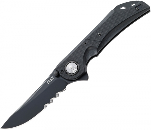 5.5" closed. 4" black PVD coated Veff serrated 1.4116 stainless blade. Black G10 handle. Extended tang. Thumb stud. Lanyard hole. Pocket clip. IKBS ball bearing pivot system. Designed by Flavio Ikoma. Boxed.
