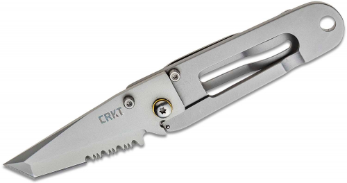 3.5" closed. 2.25" bead blast finish partially serrated 420J2 stainless tanto blade. Bead blast finish 2Cr13 stainless handle. Thumb stud. Lanyard hole. Pocket clip. Boxed.