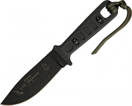 8 1/2" overall. 4 1/4" 1095 high carbon steel blade with black traction coating. Full tang. Black canvas micarta handles with black composition inlays. Black lanyard. Molded black Kydex sheath with multi-position boot/belt clip. Comes with firestarter and survival whistle.