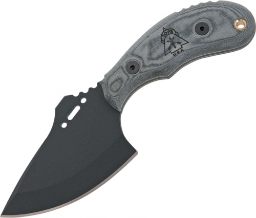7 1/2" overall. 3 5/8" 1095 high carbon steel blade with black traction coating. Full tang. Black linen micarta handles. Lanyard hole. Black Kydex belt clip sheath.