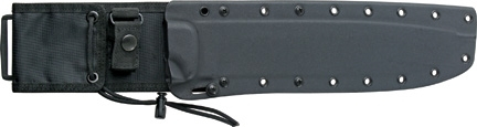 16.5" overall. 10.38" venom green powder coated 1095HC steel blade. Orange G10 handle. Full, extended tang. Lanyard hole. Hammer pommel. Black Kydex sheath with clip plate attachment and nylon MOLLE compatible belt sheath. Bulk packed.