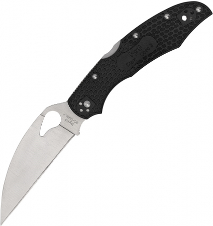 4.88" (12.4cm) closed. 3.75" (9.53cm) satin finish 8Cr13MoV stainless Wharncliffe blade. Black FRN handle. Thumb pull. Lanyard hole. Pocket clip. Boxed.