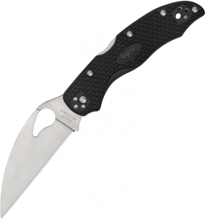 4.38" (11.13cm) closed. 3.38" (8.59cm) satin finish 8Cr13MoV stainless Wharncliffe blade. Black FRN handle. Thumb pull. Lanyard hole. Pocket clip. Boxed.