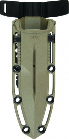 10" (25.4cm) overall. 4.75" (12.07cm) black TiNi coated S35VN stainless blade. Flat Dark Earth G10 handle. Full tang. Lanyard hole. Fully ambidextrous carry. Handles are removable. Universal mounting system. Black GRN MOLLE compatible belt sheath. Boxed.
