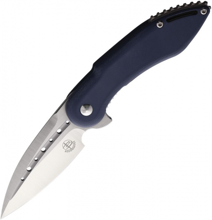 4" (10.16cm) closed. 3" (7.62cm) satin finish D2 tool steel blade. Blue-Gray G10 handle. Extended tang. Lanyard hole. Pocket clip. Boxed.