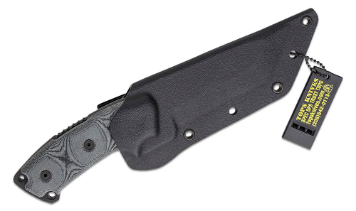 Over 14 continual years in the field, in every terrain and in all conditions, the steel eagles have proven their strength, durability, versatility, and dependability, within the special operations community. This was the first model which TOPS knives brought out for the real field "operators" and over the years continues to be a favorite "personal carry choice... of the quiet professionals." It features a wicked 5.13" clip point blade with a jagged sawback spine for maximum damage. Beautiful linen Micarta scales, a tough Kydex sheath, and a durable 0.25" stock of 1095 carbon steel blade with black traction coating make this knife as durable as any on the market. Special Ops trust TOPS...'cause they're hard to the core.
