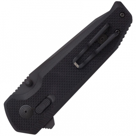 4.63" (11.76cm) closed. 3.38" (8.59cm) black oxide coated CTS-XHP stainless tanto blade. Black G10 handle. Extended tang. Pocket clip. Thumb stud. Boxed.