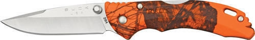 Manual Opening. Blaze Orange. 3 3/4" closed lockback. 2 3/4" 420HC stainless drop point blade with dual thumb studs. Blaze Orange camo glass reinforced nylon handles. Lanyard slot.