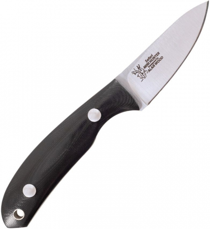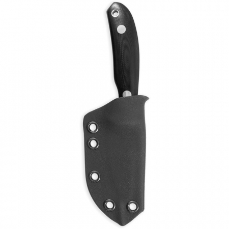 6.25" (15.88cm) overall. 2.5" (6.35cm) satin finish 14C28N Sandvik stainless blade. Black G10 handle. Full tang. Lanyard hole. Leather lanyard. Black Kydex sheath. Boxed.