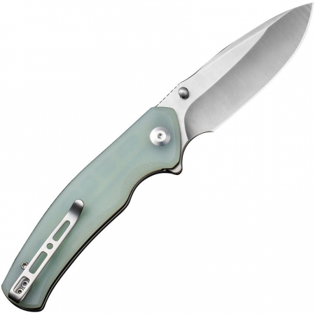 4.5" (11.43cm) closed. 3.5" (8.89cm) satin finish D2 tool steel blade. Jade G10 handle. Extended tang. Thumb stud. Pocket clip. Black nylon belt sheath. Boxed.