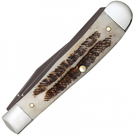 V6254 SS pattern. 4.13" (10.49cm) closed. Black PVD coated stainless clip and spey blades. Vintage bone handle. Nickel silver bolster(s). Inlay shield. Boxed.