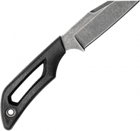 6.5" (16.51cm) overall. 2.5" (6.35cm) Blackstone coated 8Cr13MoV stainless Wharncliffe blade. Black rubberized TPR handle. Full tang. Lanyard hole. Skeletonized handle. Black 550 paracord lanyard. 360 degree rotating sheath clip. Black polypropylene belt sheath. Hang packaged.