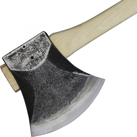 31.5" overall. 7.25" C45 steel axe head with 7" cutting edge. Hickory handle. 13 degree grind on head, 161 degree chisel grind on edge. 5.29 lb semi-finished axe head. Designed for athletes training for Stihl Timbersports competitions. Bulk packed.