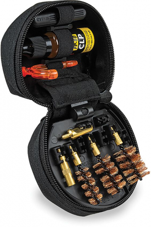 Includes: (10) 3" patches; Slotted tip; Small and large patch savers; Bore brushes with size marked on stem; 40" aircraft grade Memory-Flex cable; Large obstruction remover; T-handle; Chamber flag; 0.5 fl oz Shooter's Choice FP-10 Lubricant Elite CLP. For 12/10 gauge, 20 gauge and .410 gauge shotguns. Hardside carrying case.