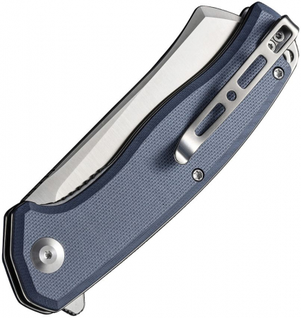 4.63" (11.76cm) closed. 3.5" (8.89cm) satin finish 9Cr18MoV stainless sheepsfoot blade. Blue G10 handle. Extended tang. Lanyard hole. Pocket clip. Black nylon zippered storage case. Boxed.