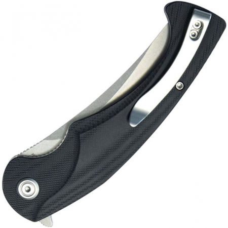 4.5" (11.43cm) closed. 3.5" (8.89cm) stonewash finish AUS-10A stainless blade. Black G10 handle. Extended tang. Pocket clip. Boxed.