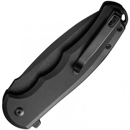 4.87" (12.37cm) closed. 3.75" (9.53cm) black stonewash finish Nitro V steel drop point blade. Black aluminum handle. Extended tang. Pocket clip. Black nylon zippered storage case. Boxed.
