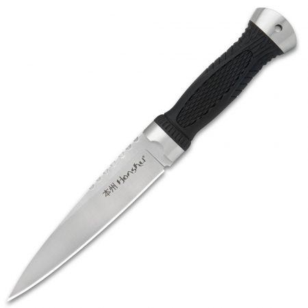 The Honshu Sgian Knife is a fusion of practicality and elegance. This knife is built with exceptional craftsmanship and features that set it apart from the rest. The 5 3/8" blade, made from 5mm thick 7Cr13 stainless steel, showcases a satin finish that adds both style and durability. The stainless steel handguard provides enhanced protection during use, while the stainless steel pommel features a convenient lanyard hole for easy attachment. The ergonomic TPR rubber handle has grooves that ensure a comfortable and secure grip, providing precise control in any situation. With a length of 9 5/8" overall, this knife strikes the perfect balance between compactness and functionality. Carrying and storing the Honshu Sgian Knife is made easy with its black leather sheath with snap closure and metal boot clip, allowing for convenient attachment to belts, bags, or boots. This knife is a reliable and versatile tool that combines style, durability, and practicality.