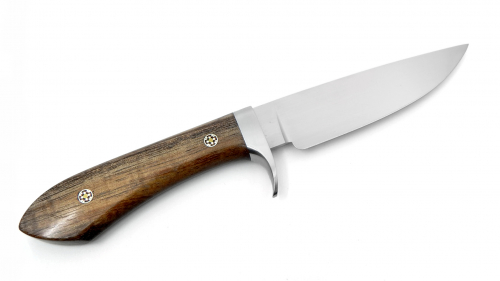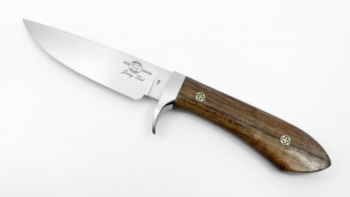 The White River Sendero Classic with a custom Koa Wood handle and mosaic pins. The blade finish is a beautiful hand rubbed satin.