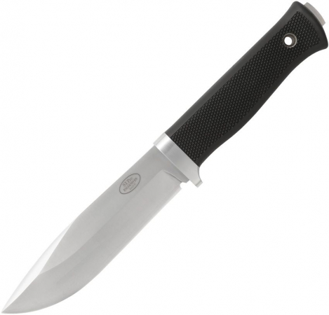 9.75" (24.77cm) overall. 5" (12.7cm) satin finish laminate cobalt steel modified clip point blade. Black checkered thermorun handle. Full tang. Lanyard hole. DC4 whetstone with leather pouch. Black Zytel belt sheath. Storage case.