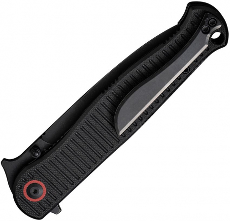 5.25" (13.34cm) closed. 4" (10.16cm) black stonewash finish Nitro V steel blade. Black G10 handle. Thumb stud. Extended tang. Lanyard hole. Pocket clip. Black nylon zippered storage case. Boxed.