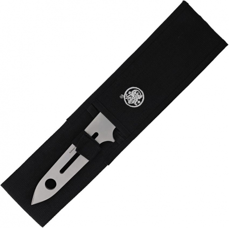14" (35.56cm) overall. 7" (17.78cm) satin finish stainless blade. One-piece construction. Lanyard hole. Set of two. Dual pointed ends. Black nylon belt sheath. Clam packed.