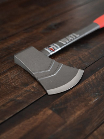 17" overall. 6.25" 1045 carbon steel axe head with 3.75" cutting edge. Weight: 2.89lb. Dimpled finish axe head. Carbon steel handle with red rubber grip. Bulk packed.