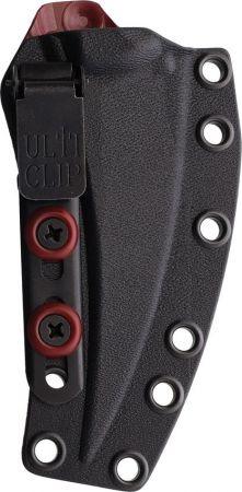 8.13" (20.65cm) overall. 4" (10.16cm) black DLC coated Bohler M390 stainless blade. Black canvas micarta handle. Kydex belt sheath.