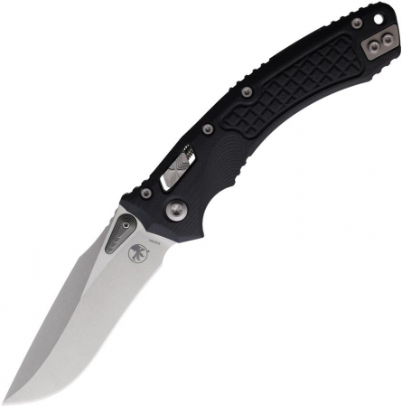 5.38" (13.67cm) closed. 4" (10.16cm) stonewash finish Bohler M390MK stainless blade. Black G10 handle. Pocket clip. Lanyard hole. Frag pattern handle. Unique thumb stud opener with ball bearing pivot. Microtech item #137RL-10FRGTBK. Boxed.