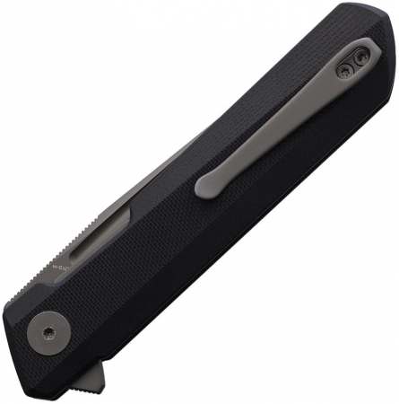 4.63" (11.76cm) closed. 3.5" (8.89cm) gray PVD coated MagnaCut blade. Black G10 handle. Extended tang. Pocket clip. Boxed