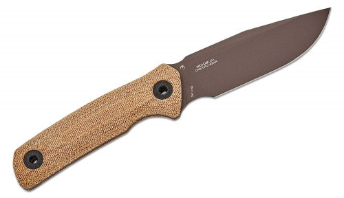 Natural color canvas micarta handle features a 3D-machined, contoured surface that comfortably fills the hand