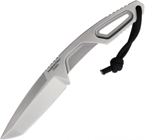 Versa is a fixed-blade knife with a monolithic structure, milled out of a single piece of Bohler N690 steel. The ergonomics are designed to ensure maximum comfort and safety during use. The skeletonized full-tang structure allows you to customize the handle by covering it with paracord, further expanding the possibilities of use and customization of the knife. The total length is 180 mm (7”) with a Tanto profile blade. The kydex sheath is designed for a quick and safe extraction of the blade.