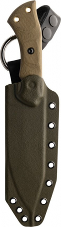 10.88" (27.64cm) overall. 5.75" (14.61cm) black traction coated 1095HC steel blade. Green canvas micarta handle. Full tang. Lanyard hole. Bulk packed.