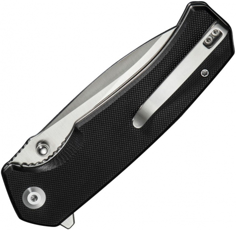 4.88" (12.4cm) closed. 3.75" (9.53cm) satin finish 9Cr18MoV stainless drop point blade. Black G10 handle. Extended tang. Thumb stud. Pocket clip. Boxed.