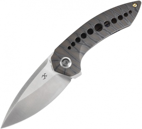 4.25" (10.8cm) closed. 3.13" (7.95cm) satin finish CPM-20CV stainless drop point blade. Flame anodized titanium handle. Extended tang. Pocket clip. Black nylon pouch. Boxed.