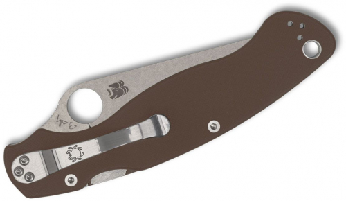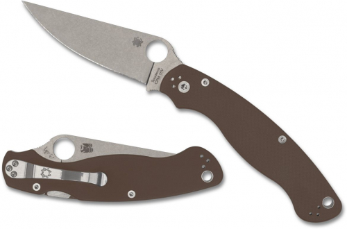 Featuring a broad, full-flat-ground blade, lightweight, open-backed handle construction, and a user-friendly LinerLock mechanism, the original Military also included an oversized Trademark Round Hole for swift, ambidextrous, one-handed opening—even while wearing gloves. These defining qualities resonated with a broad audience of knife users and quickly established the Military as one of Spyderco's signature designs.