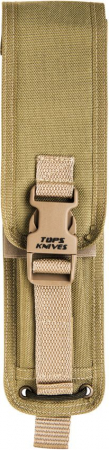8.75" (22.23cm) overall. 4.25" (10.8cm) black traction coated 1095HC steel blade. Tan canvas micarta handle. Full tang. Lanyard hole. Tan ballistic nylon MOLLE compatible belt sheath. Bulk packed.