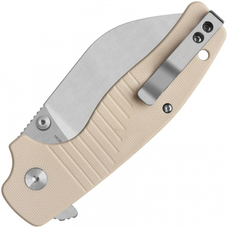 4.5" (11.43cm) closed. 3.25" (8.26cm) satin finish 14C28N Sandvik stainless Wharncliffe blade. Ivory G10 handle. Extended tang. Thumb stud. Lanyard hole. Pocket clip. Boxed.