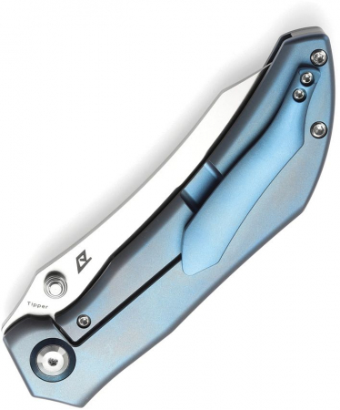 4.5" (11.43cm) closed. 3.38" (8.59cm) satin finish S35VN stainless Wharncliffe blade. Blue anodized titanium handle. Thumb stud. Pocket clip. Boxed.